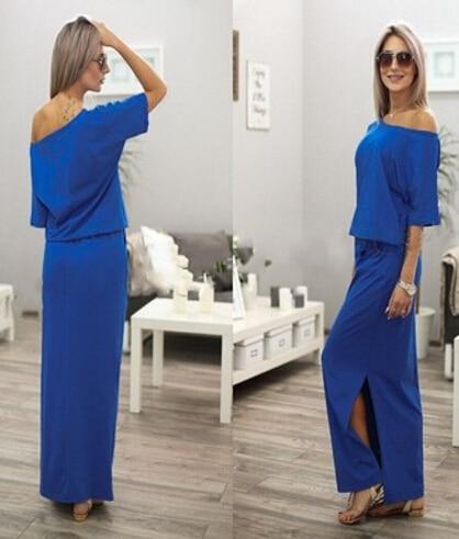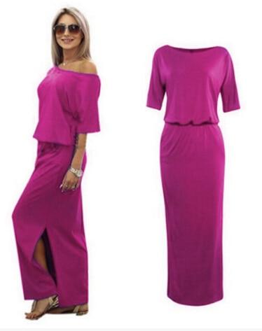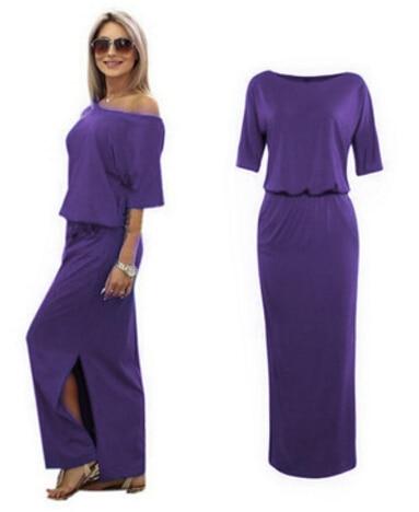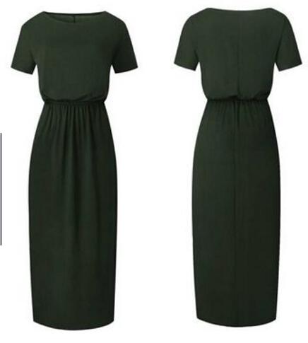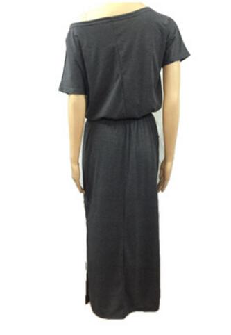 Hot Sale Women Boho Maxi Dress Sexy Summer Short Sleeve Side Slit Loose Evening Party Long Beach Dress with Pocket Vestidos