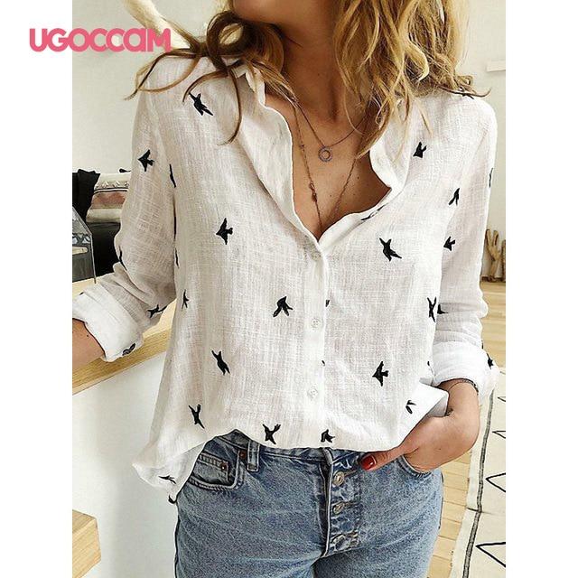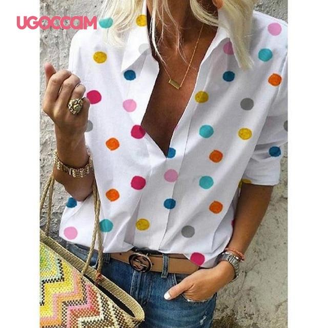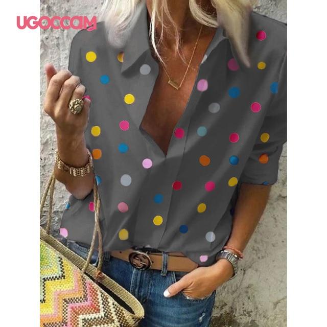 UGOCCAM Women Blouse Long Sleeve Shirt Print Office Turn-down Collar Blouse Elegant Work Plus Size Tops Fashion Women Tops