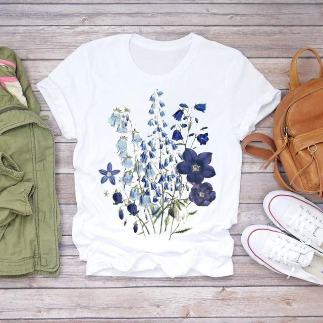 Women 2020 Summer Short Sleeve Floral Flower Fashion Lady T-shirts Top T Shirt Ladies Womens Graphic Female Tee T-Shirt